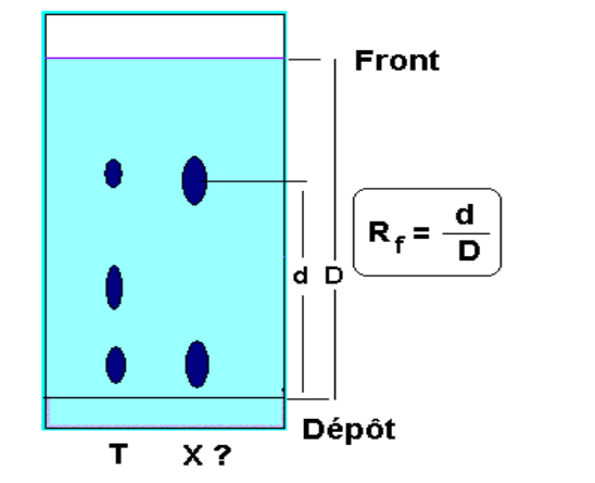 d : distance parcourue par le composé (mesuré au centre de la tache)