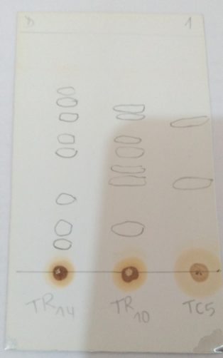 Figure 02 : Chromatographie sur couche mince de l’extrait brut de l’isolat en utilisant le système de solvants