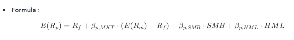 Extends the CAPM by incorporating additional factors (size, value) to explain portfolio returns.