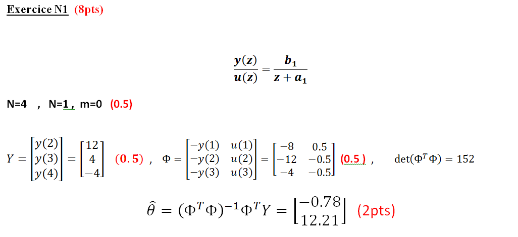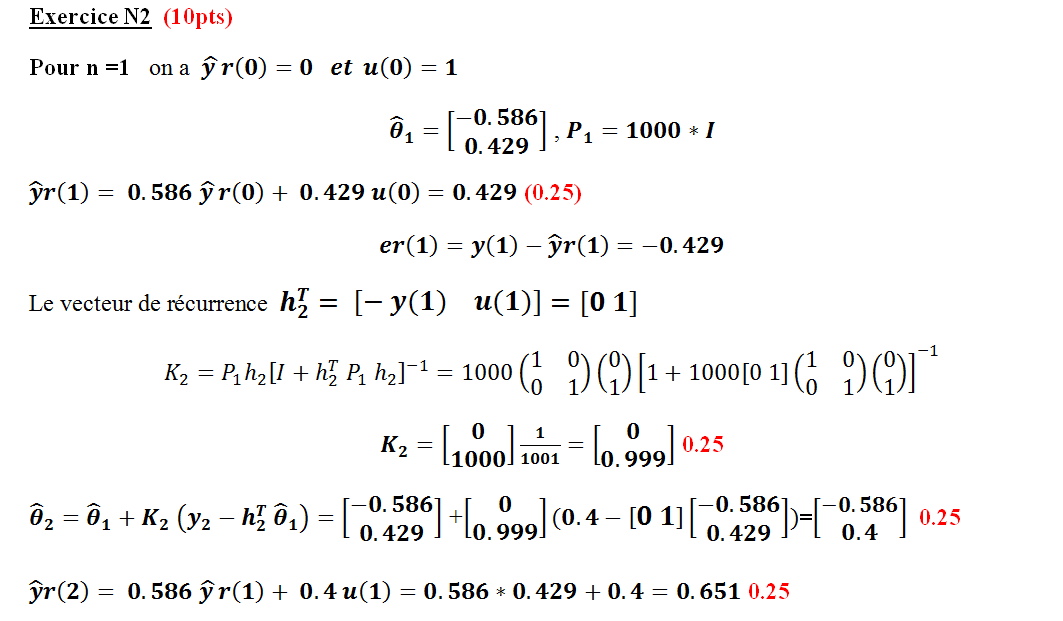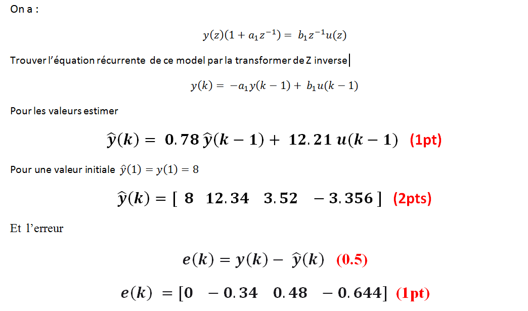 Identification paramétrique : est d'extraire un modèle mathématique a partir de l’observation des signaux d’entrées et de sorties, les paramètres des modèles sont obtenus par la minimisation de l’erreur de prédiction suivant un critère d’optimalité (1pts)