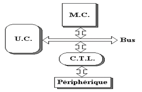 Plusieurs organes sont impliqués dans une opération d’E/S, il s’agit, en plus de l’UC et de la MC