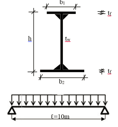 Soit un profil PRS dont la section est indiquée sur la figure ayant comme dimensions: h=600mm ; b1=170mm ; b2=340mm; tw=6,6mm ; tf=11,5mm; a=8mm. L’acier est S235.