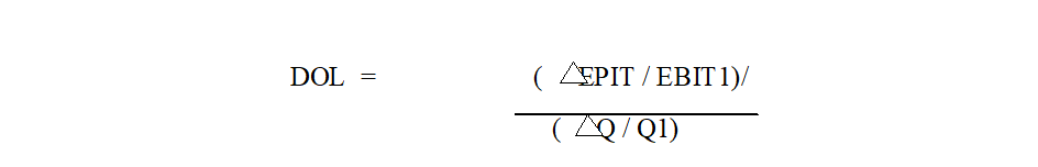 معدل الرفع التشغيلي = نسبة التغير في مستوى الأرباح قبل الفائدة والضريبة / نسبة التغير في مستوى حجم النشاط والمعبر عنه في هذه الحالة بكميات المبيعات Q