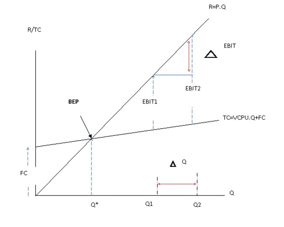 محاسبيا،يعرف معدل الرفع التشغيلي على أنه نسبة إستجابة الأرباح للتغير الحاصل على مستوى حجم النشاط؛فكلما كانت درجة الرفع التشغيلي أكبر كلما كانت هذه الاستجابة أكبر والعكس صحيح.الشكل رقم 1