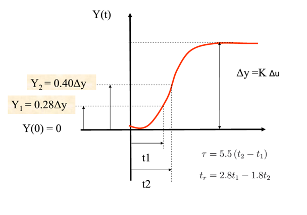 La méthode de Strejc permet d’identifier ce modèle `a partir de la réponse à un échelon. Les paramètres identifiés sont donc :