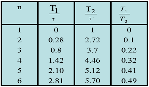 Tableau : Rapports entre les constantes de temps pour l’identification par la méthode de Strejc.