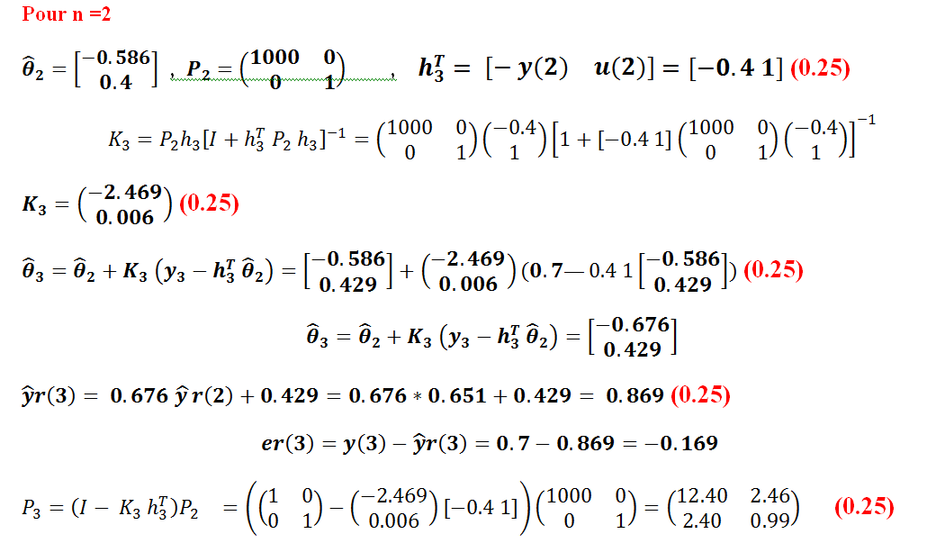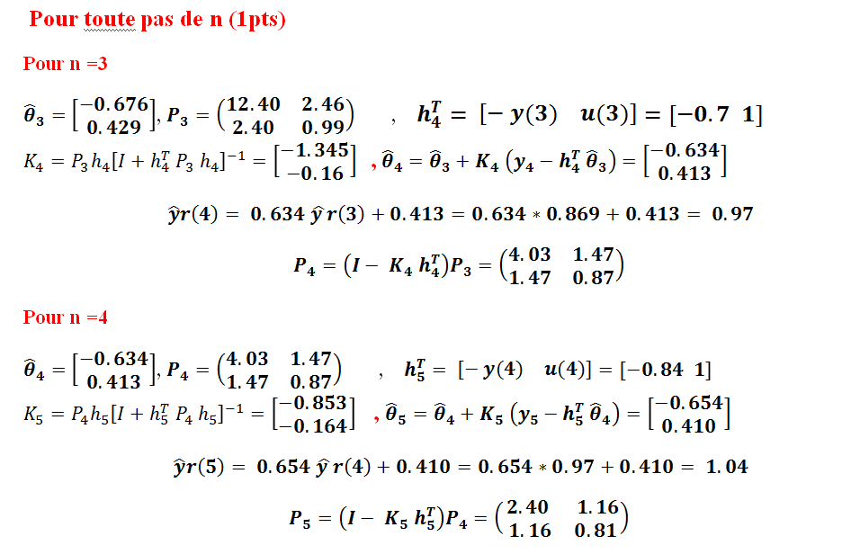 Identification paramétrique : est d'extraire un modèle mathématique  a partir de l’observation des signaux d’entrées et de sorties, les paramètres des modèles sont obtenus par la minimisation de l’erreur de prédiction  suivant un critère d’optimalité (1pts)