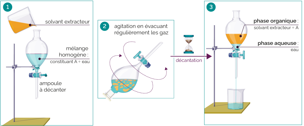 Figure 05 : Les étapes de l’extraction liquide-liquide