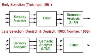 - Late-Selection Models (Deutsch & Deutsch, 1963; Norman, 1968): These models suggest that all information is fully analyzed for meaning before selection occurs. The filter operates later in the processing stream, selecting information based on both physical properties and meaning. While this model has the advantage of processing all information, it is also more resource-demanding.