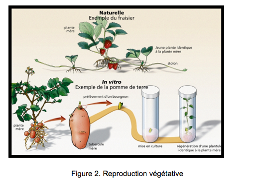 Il s’agit de la multiplication naturelle des végétaux sans passer par la reproduction sexuée, il y’a formation d’un individu complet à partir d’un organe de la plante mère, exemple: