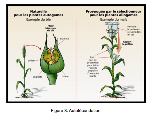 Le sélectionneur peut provoquer une autofécondation chez ces plantes par exemple: pour le mais: les inflorescences femelles sont protégées par un sac, puis récupération des inflorescences mâles afin de les déposer dessus.