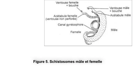 Tel Schistosoma mansoni agent de la bilharziose, la particularité de ces Trématodes est qu’ils sont à sexes séparés (figure 5).