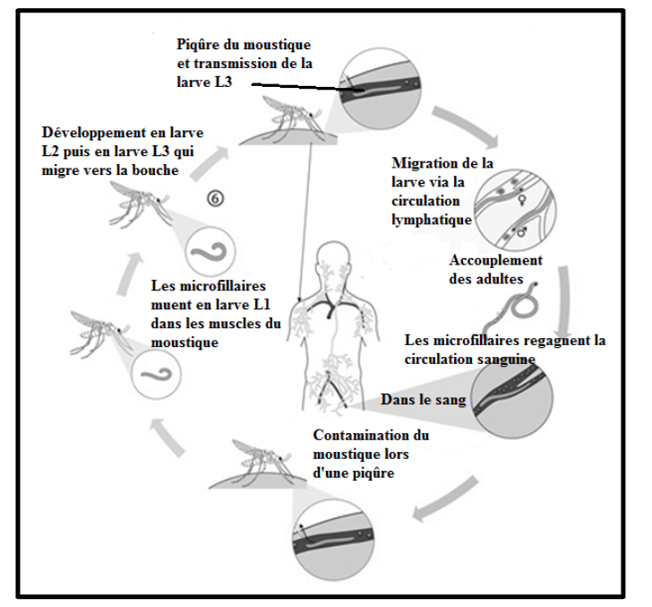 Figure 7. Cycle de développement et de transmission de la filaire de Bancroft.