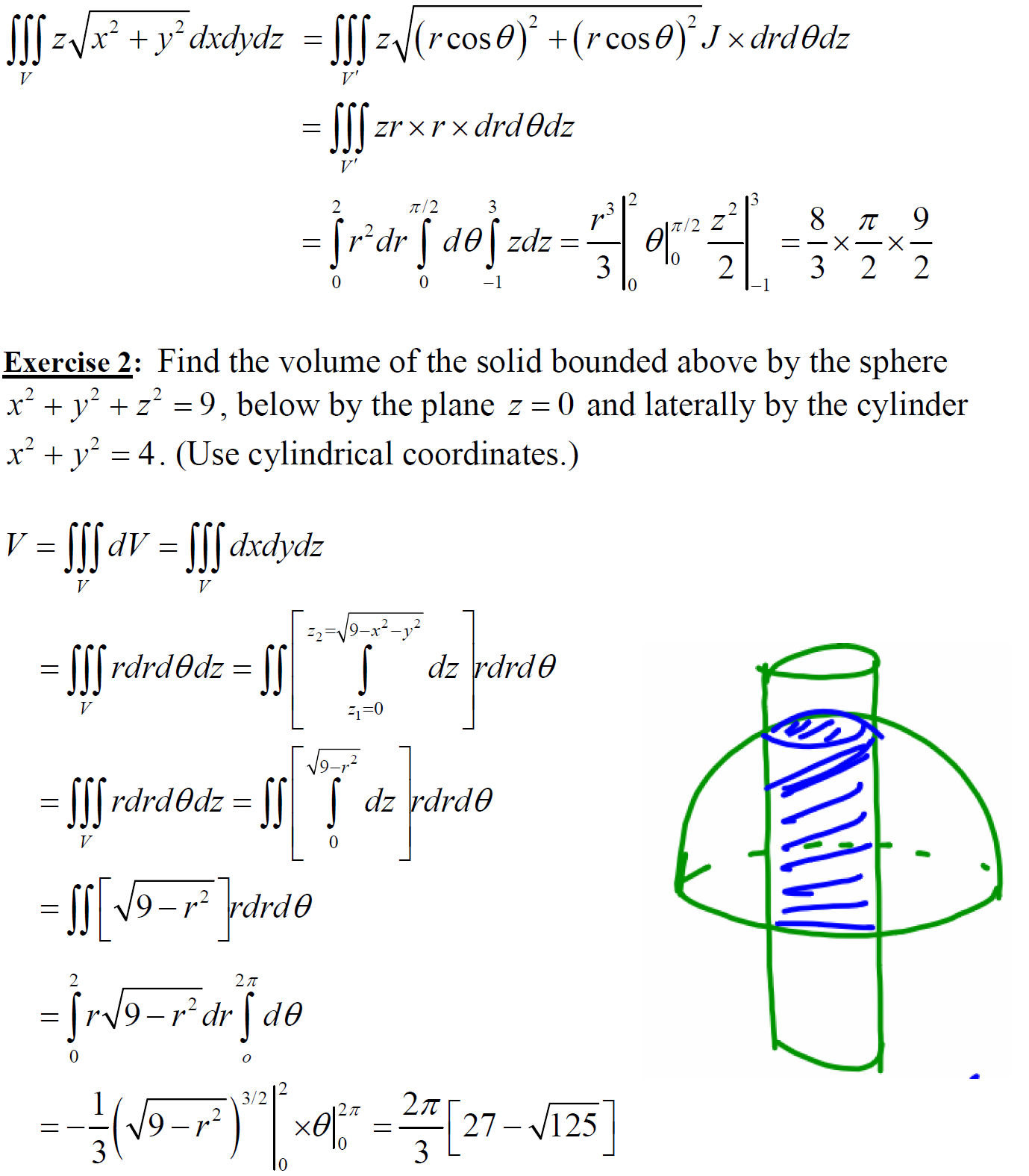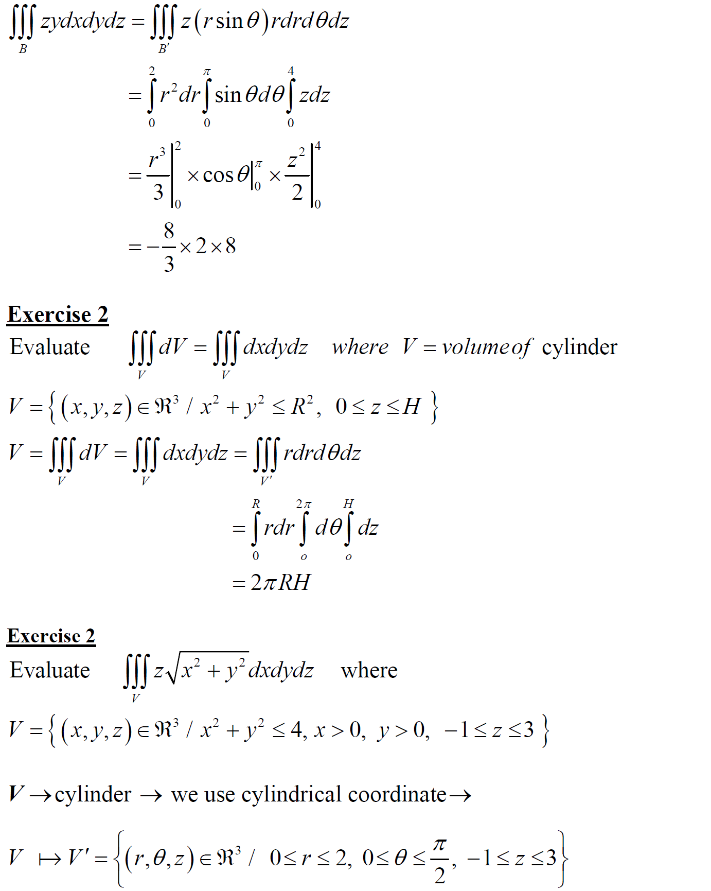 ► Triple integral in cylindrical and spherical coordinates