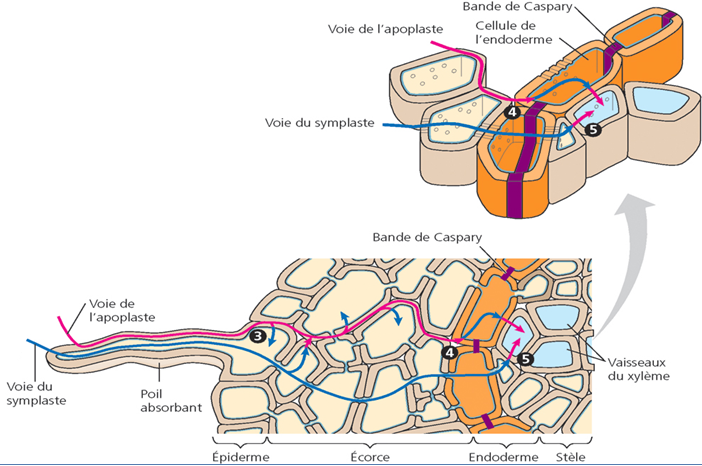 Absorption racinaire : voies du symplaste et de l'apoplaste