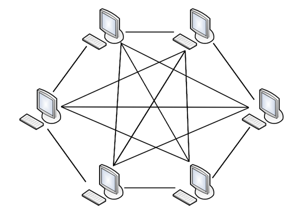 Le principe de la topologie maillée est de relier tous les ordinateurs entre eux (ou du moins, un maximum).