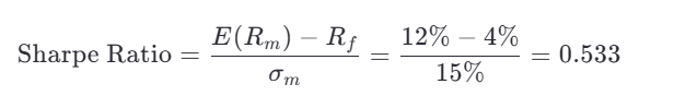 • The slope of the CML is called the Sharpe Ratio , which measures the excess return per unit of risk.