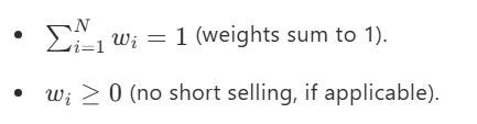 To identify efficient portfolios, investors use mathematical optimization techniques to solve for weights () that maximize return or minimize risk under constraints such as: