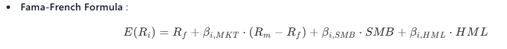 - Accounts for anomalies like the size effect and value effect, which CAPM cannot explain.
