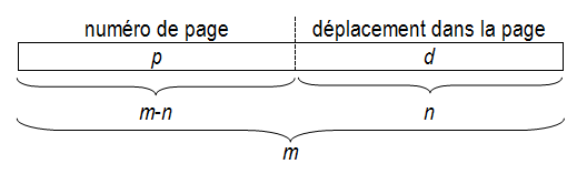 If the size of the logical memory is 2m and the size of the page is 2n addressing units (bytes or words) the most significant m-n bits of a logical address designate the page number and the n bits of low order designate the offset on the page. The figure below shows the shape of a logical address.