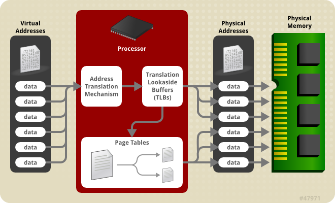 The size of the page (like that of the frame) is defined by the hardware. It is typically a power of 2 varying between 512 bytes and 8192 bytes per page, depending on the architecture of the computer. The figure below shows the hardware support needed for paging as well as the translation of a logical address to a physical address.
