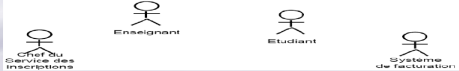 Un acteur représente le rôle joué par quelque chose ou quelqu’un se trouvant dans l’environnement du système étudié.il est en relation avec le métier de l’entreprise et interagit avec le système dans différents cas d’utilisation , Il peut être un élément de la structure de l’entreprise tel qu’une direction, un service ou un poste de travail