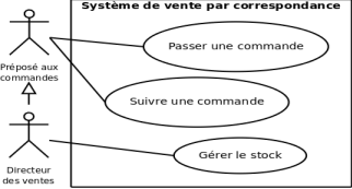 Par exemple, la figure montre que le directeur des ventes est un préposé aux commandes avec un pouvoir supplémentaire : en plus de pouvoir passer et suivre une commande, il peut gérer le stock. Par contre, le préposé aux commandes ne peut pas gérer le stock.