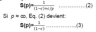 La loi d'Amdahl Soit c la fraction (sous forme a/b ou sous forme de nombre réel) d'un programme parallèle, (1−c) la fraction qui s'exécute de manière séquentielle et p le nombre de processeurs.