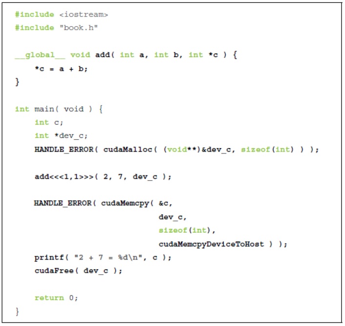 Nous voyons maintenant que CUDA C ajoute le qualificatif __global__ au standard C.