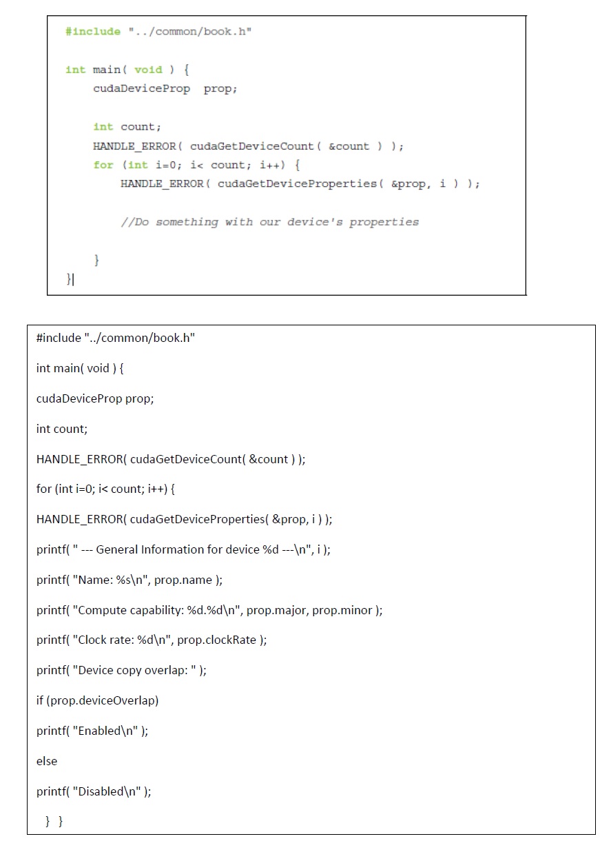 2-4. utilisation des propriétés de device Si on a plusieurs GPUs dans notre système nous voulons choisir le GPU rapide doté du plus grand nombre de multiprocesseurs sur lequel notre code exécutera.